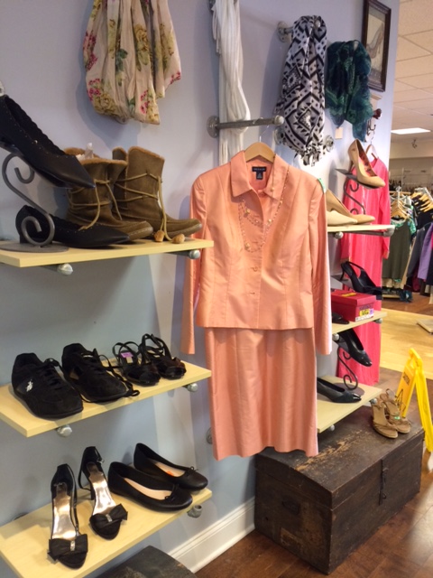 This is a thrift store where men, women and children can buy an entire wardrobe of high-quality clothing and shoes for very reasonable sums. Women’s clothing predominates, however. The shopping experience is easy, with all garments on wooden hangers and extremely well-organized by size and with some racks just for favored brands. Peggy saw special racks for Talbots, Guess, Juicy Couture, Chico’s, plus sizes and several racks of up-to-date formal wear and wedding dresses. There are several attractive shoe and boot displays.
