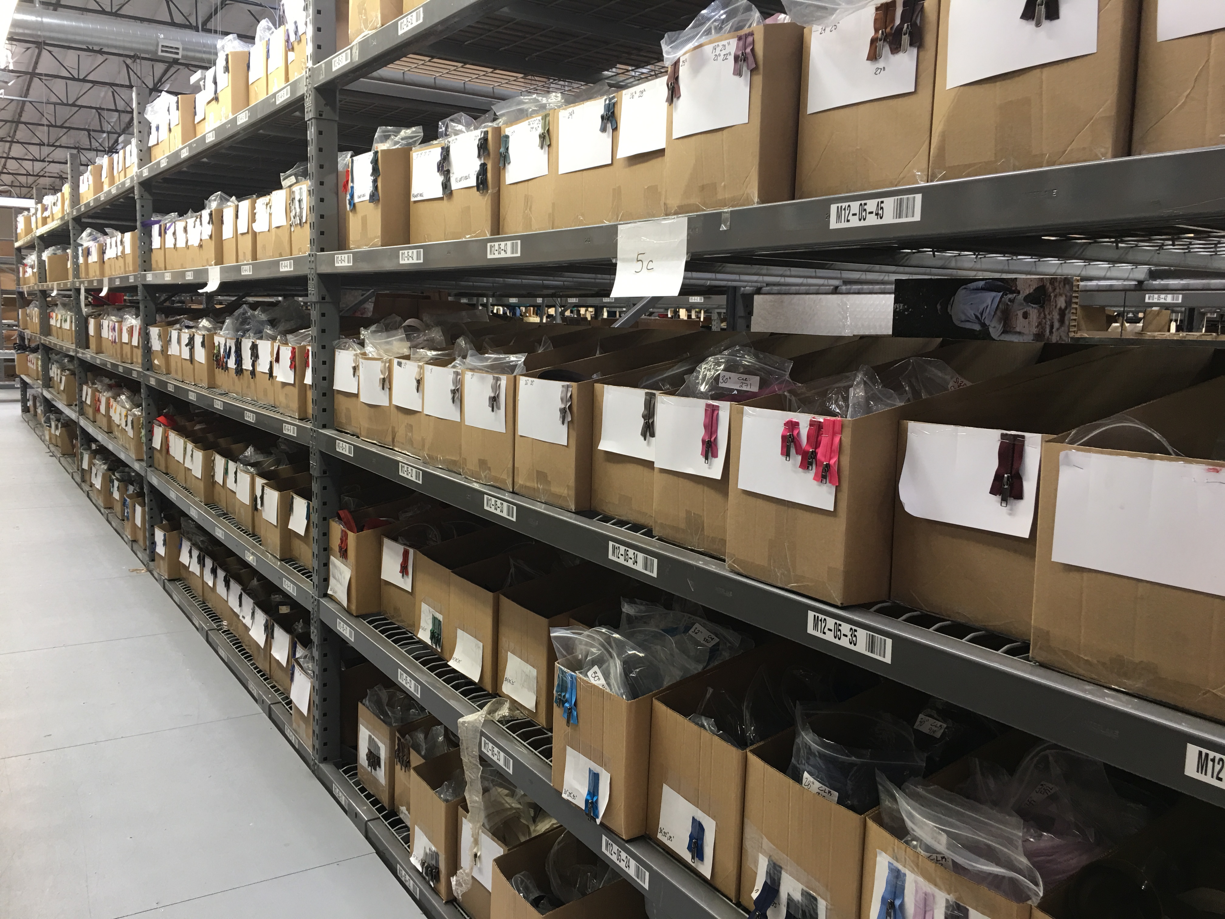 Long row of boxed zippers